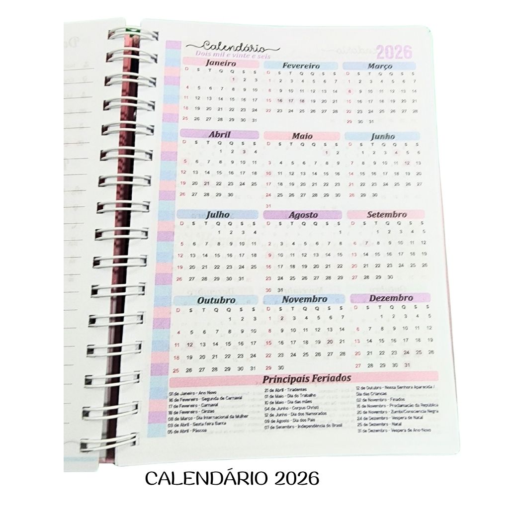 - Agenda 2026 com 250 páginas para todo o ano letivo