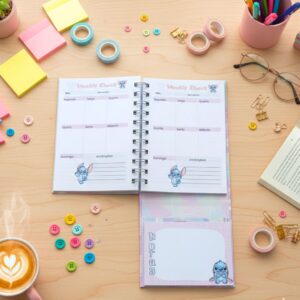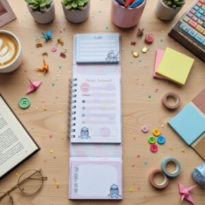 Conta com 2 bloquinhos lindos com 80 folhas cada e um planner com 130 páginas pra anotar tudo que precisar.